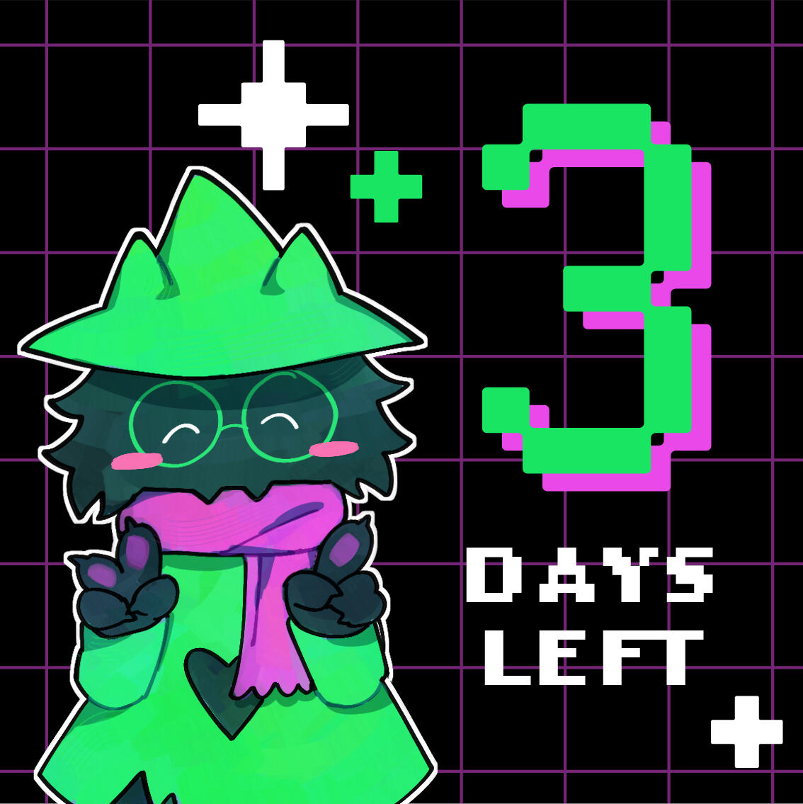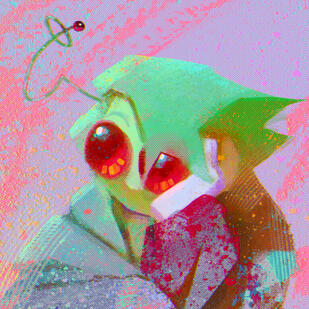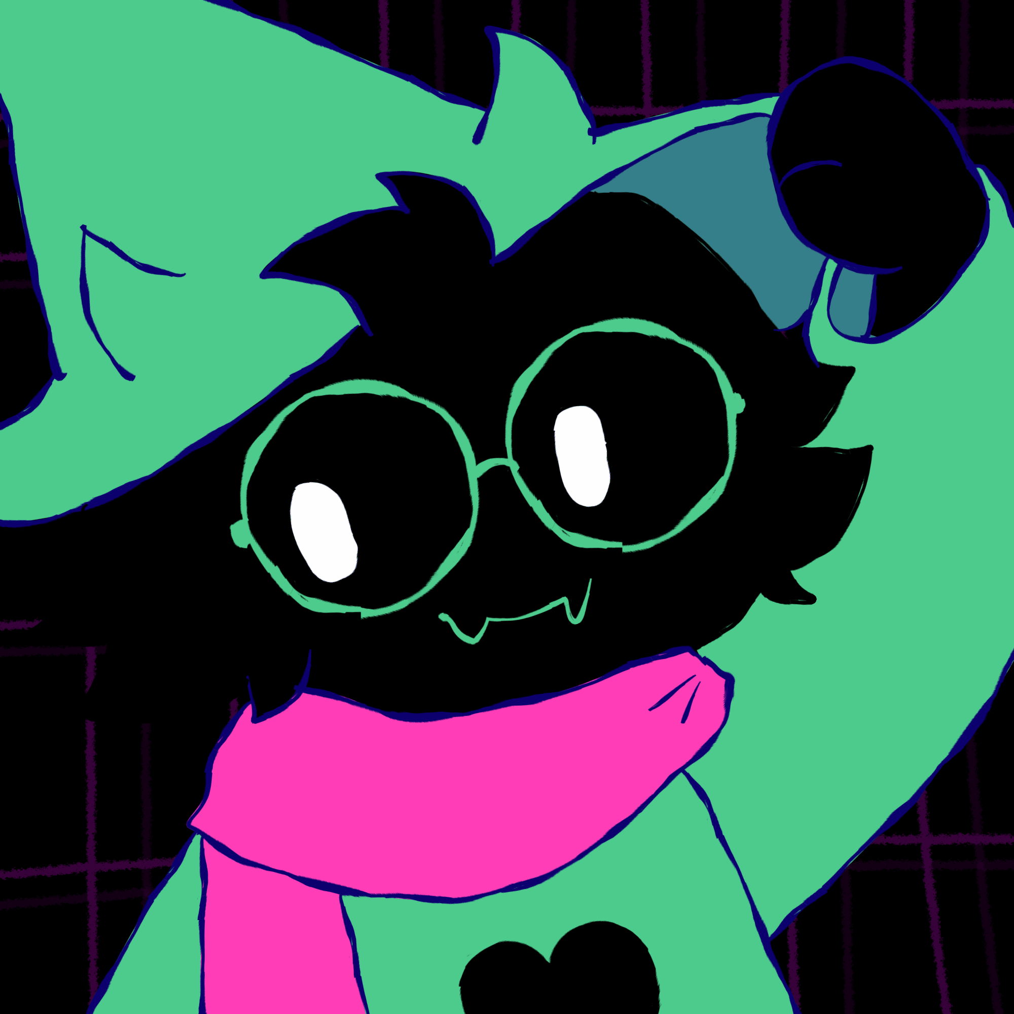 How did Ralsei do it? Susie gathers her claws into a bowl shape and thinks. She thinks of the small, green spark that jumped out of her palms when Ralsei taught her. She thinks of the dark emerald hue of the cactus, the scent of the soil when she watered it. Susie thinks of Kris and how their sweater cloaks them, washes them out into the same colors as Hometown. Of Ralsei and his green hat, the vibrant pink scarf against the pine green ensemble. Even Gerson, who curiously grins at her as a familiar green light finishes washing over her body.