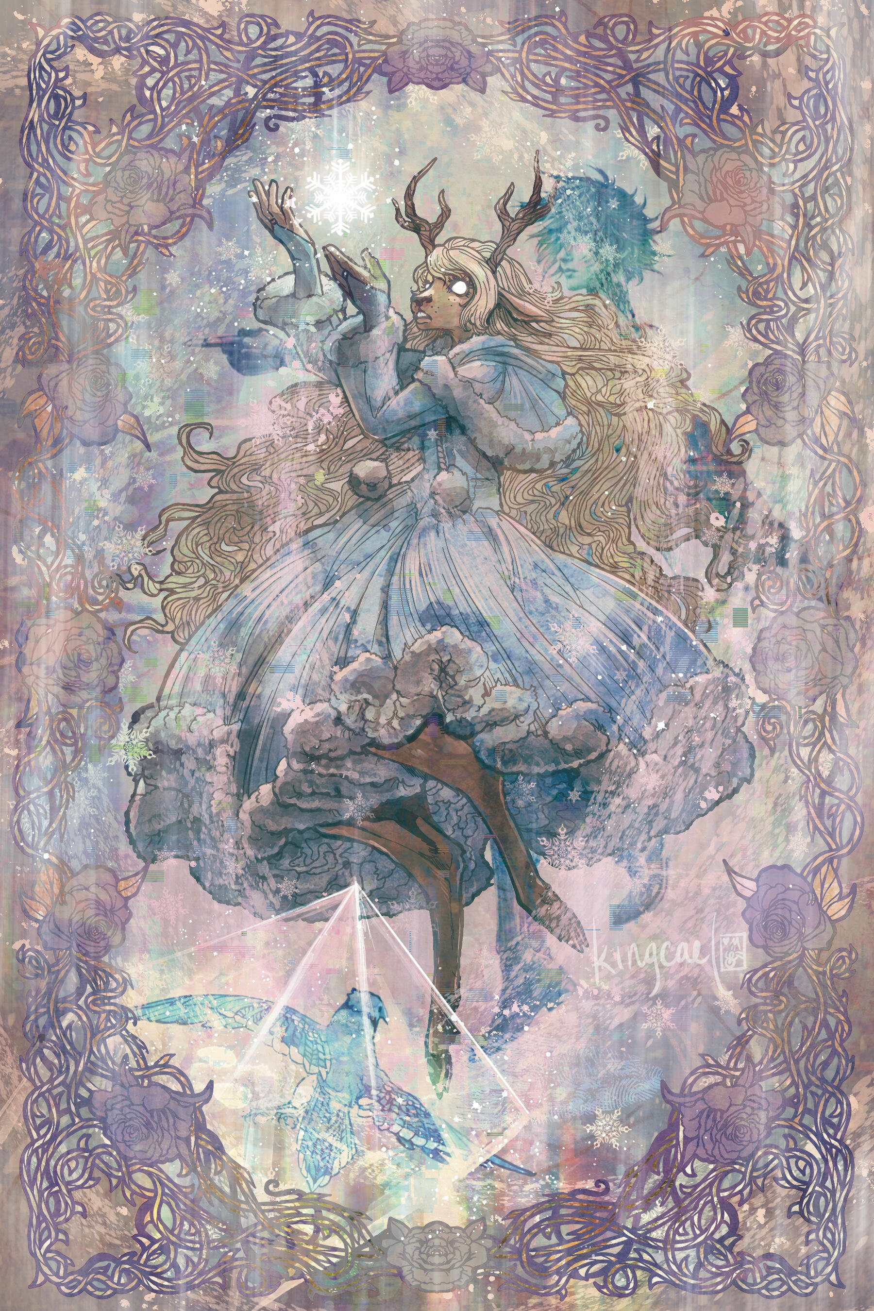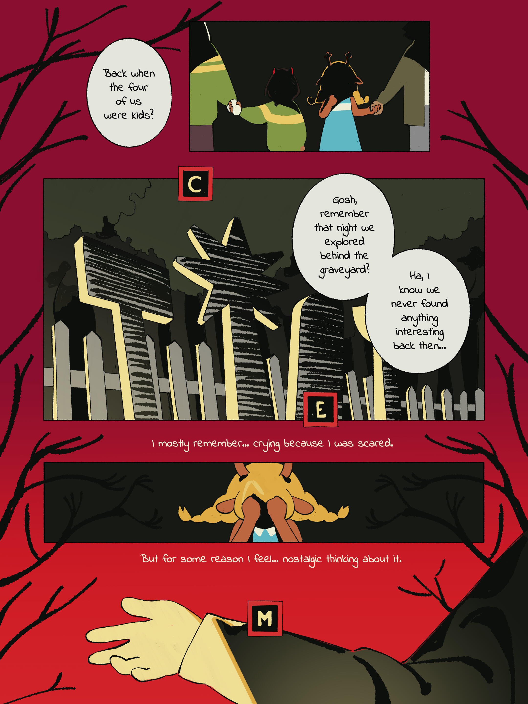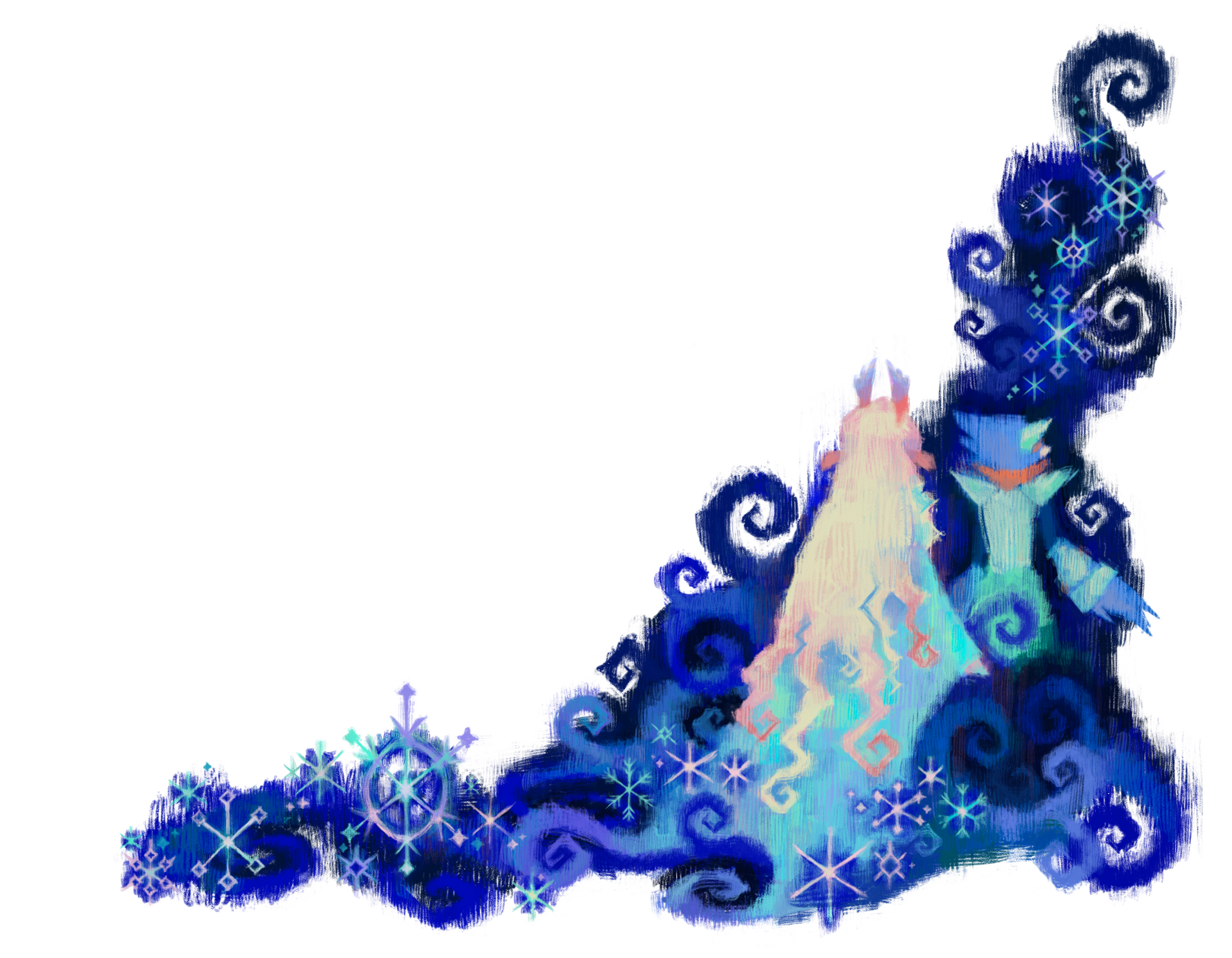 Berdly looked around, then just silently nodded his head and sat down. He set his axe next to him, causing it to disappear, rested his hands in his lap, and looked at Noelle again. She was broken down, fallen to her knees with the rough edge of her mage robe spilling out around her and almost glowing softly in the darkness of the alleyway. Every tear that still fell from her eyes froze to her fur. Her hands were covered in a thin layer of frost. Her eyes, so full of tears, were so devoid of life and color.He kept his distance, still processing the fact that he really had almost died just then. Even if this was all a really crazy dream, that was still terrifying. Kris had almost made Noelle kill him. Why would they even do that? What would lead to that? Sure, Berdly knew he could be annoying at times, and maybe he hasn’t been the nicest monster to Kris, and yes maybe he did like to mock them and hold his own ever growing friendship with Noelle in front of them like a dollar on a fishline, and he did like to tease them about their grades being low, and sure he–Okay, maybe there were a lot of reasons that Kris would be upset or dislike him, but them wanting to kill him was still crazy, right? Right?!?Noelle was staring at him. Maybe he wasn’t the nicest friend to Noelle, either.She had asked him to stay back, but something was compelling him to get closer. He could do better, surely. He could be better than he had been.He slowly shifted a bit forward, reaching his hand forward to rest on Noelle’s shoulder. He flinched back almost immediately from how cold she was, but he pushed through it. He placed his hand on her shoulder again, bit back and swallowed the cold. This was the least he could do.“You heard it… Didn’t you?” Noelle’s voice was weak, shaking. He was shocked she wasn’t stuttering on top of that. “Their voice... Tell me you heard it. Tell me I’m not crazy!”Noelle lifted her head, looking at Berdly almost frantically. Desperate for him to validate whatever she heard.“Yes, I heard it. Was there something wrong with their voice?”The words didn’t help at all. Her head fell once again, her entire body drooping closer and closer to the ground. Maybe she had made it all up. Maybe it was all in her head. All the enemies she had frozen, was it her own choice? Almost killing Berdly, was that her own doing?It all felt so vivid, though. She could hear their voice. The way they whispered into her ear, over and over as they walked the city. Proceed. Proceed. Proceed.Had she really made it all up? Her hands were so cold. She was so cold. Everything was so cold.Was any of it real?Noelle reached for the ring on her finger, yanking it off with a wince and throwing it across the alley. She watched as blood dripped down from where the thorns had barbed their way into her skin.“Surely, now... Now I can’t hurt anyone. Right?” Her entire body was trembling, even her gaze shaking as she tried to look at Berdly. Everything in her expression pleaded with him to confirm that she was now back to being a harmless deer.Berdly looked around. He was nervous. She could tell that much. He was scared of her, wasn’t he?“Well, I...” He stood up, not pulling his axe out now. There was a hesitation, but he stepped forward, his arms stretched out toward her. Berdly really wasn’t sure what he was doing, but he knew that Noelle needed proof that she wasn’t going to hurt him. This was not something he was used to doing, not something he ever had to do at all, really. He tried to think back on how his mom would comfort him in times of stress. Well, how she comforted him when he got a bad grade or lost at a video game. Which, in retrospect, was a very different level of distress from this situation.He sat next to Noelle, not touching her, but not too far either. “I feel fine. Don’t you?”Okay, maybe that was the wrong thing to say.Noelle let out a choked laugh, looking up at the pitch black sky above them.“Right. Do I feel fine? Should I feel fine? I could’ve been killing people for the past hour for all I know! I may have almost killed you! Is this even real? Is the pain in my hands real? The blood on my finger, the ice and frost on my fur, is any of that real?” Noelle started to fidget with her hands, picking at her nails and the skin around them mindlessly.“If this is some dream, that means we’re asleep. We’re asleep in the computer lab. Shouldn’t we be working on our project? We’re going to fall behind. We need to wake up now. We need to get out of here. I need to get out of here. I want to go home now. We can work on the project tomorrow, right?”Noelle kept rambling on as her thoughts came and went, her mind running far and wide. Berdly didn’t know what to say. He had never seen anything like this, especially from Noelle. She always seemed so put together, aside from when she was embarrassed about something. Was this a panic attack? Her breathing did seem heavy. How was he supposed to help with that? Should he grab her hands before she made them bleed more, but what if that made it worse? Maybe a distraction?That was it. A distraction. Berdly was hilarious, he knew this about himself. He could easily make her laugh, and then she would feel much better!“This is kinda like that scene from that one anime, don't you think?” He interrupted whatever it was she had been saying, grabbing her hands. That was something good to do during a time like this, right? Berdly looked at Noelle, who had completely stopped talking. Her expression was one of extreme bewilderment and confusion.“I'm... Sorry? What are you talking about?”Did he even have an anime in mind? He just said that on the spot. Surely one of the countless shows he was a complete expert on must have something relatable to this moment. “Oh, you know...” He had to think of something. He wasn't thinking of anything. How could he, of a people, draw a complete blank in such a crisis? “The G