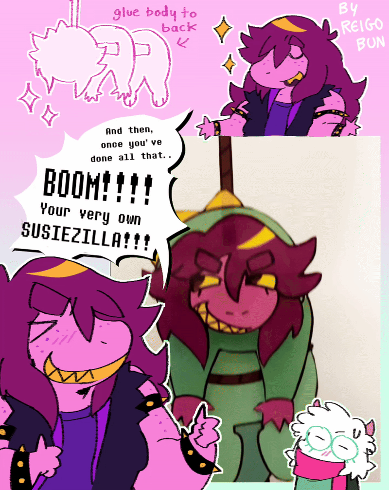 The green dude, as Susie would like to call him, is named Ralsei.He’s alright. He’s kind of annoying in the way he’s always yes-maning people. But over the course of their adventures in the Dark World, she’s warmed up to him. Unfortunately. She’s comfortable enough with him now that she’s able to walk behind him, tap him on the shoulder, and blurt out, “can I...learn?”“Learn what?” He cocks his head. Susie snatches his shoulders and jostles him a little.“The...green stuff.” She doesn’t want to say it. In the corner of her eye, she can see Kris bring a hand up to their mouth to either cough or laugh. “Fine! The healing thing you do. How’d you do it?”Ralsei doesn’t laugh at her. Instead, he grabs her hands (she has to let go of his shoulders first) and smiles.