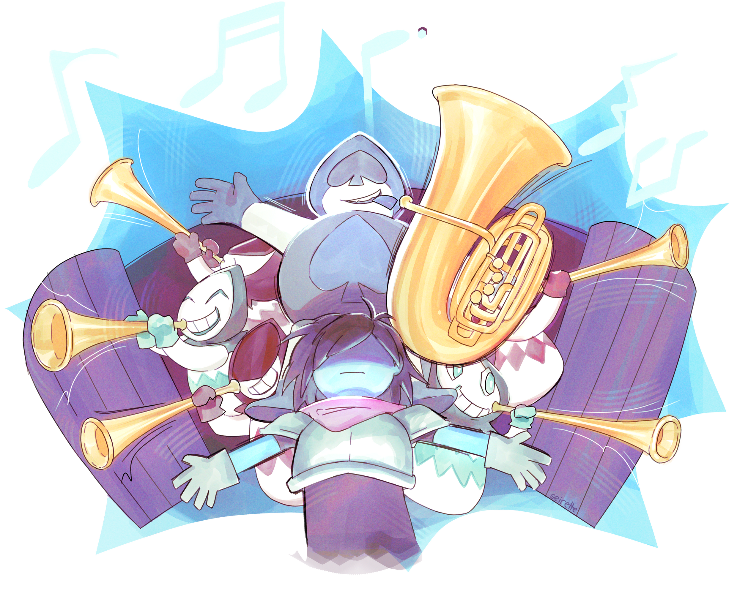 Though not incredibly common for zines in general, it's not the UTDR community without the inclusion of the many talented musicians that spend their time making a variety of amazing fan tracks and USTs.Whether it's a remix or original song, we hope you will support our hardworking artists that have put their own spin on the sound of DELTARUNE.